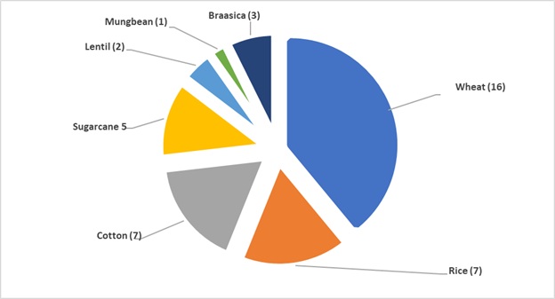 The PB&GD has been successful in evolving and releasing 41 crop varieties for general cultivation in Sindh including 16 of wheat, 07 of rice, 07 of cotton, 05 of sugarcane, 02 of lentil, 01 Mungbean, and 03 of Brassica.